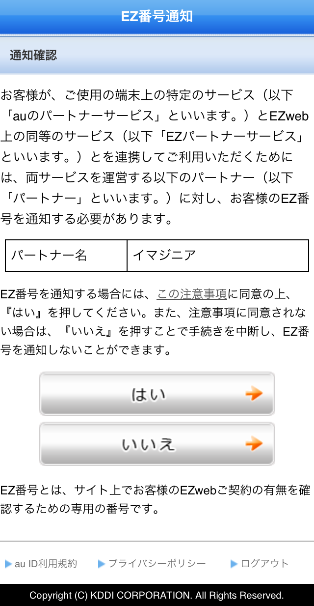 ●「EZ番号通知」画面で「はい」と選択下さい。